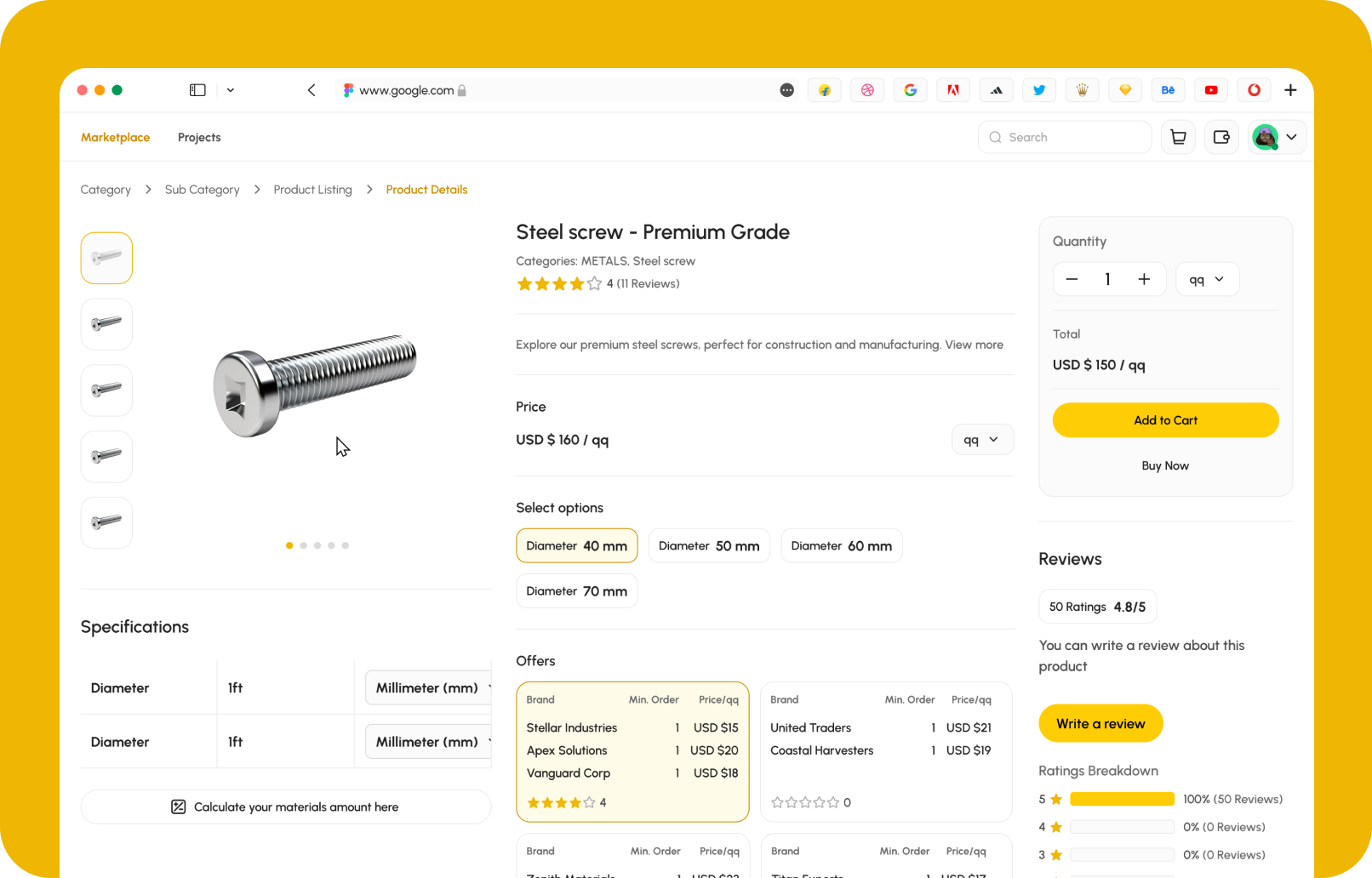 Each offer includes all the information you need to make the best decision. Offers are automatically generated and tailored to your project's specific characteristics and requirements.